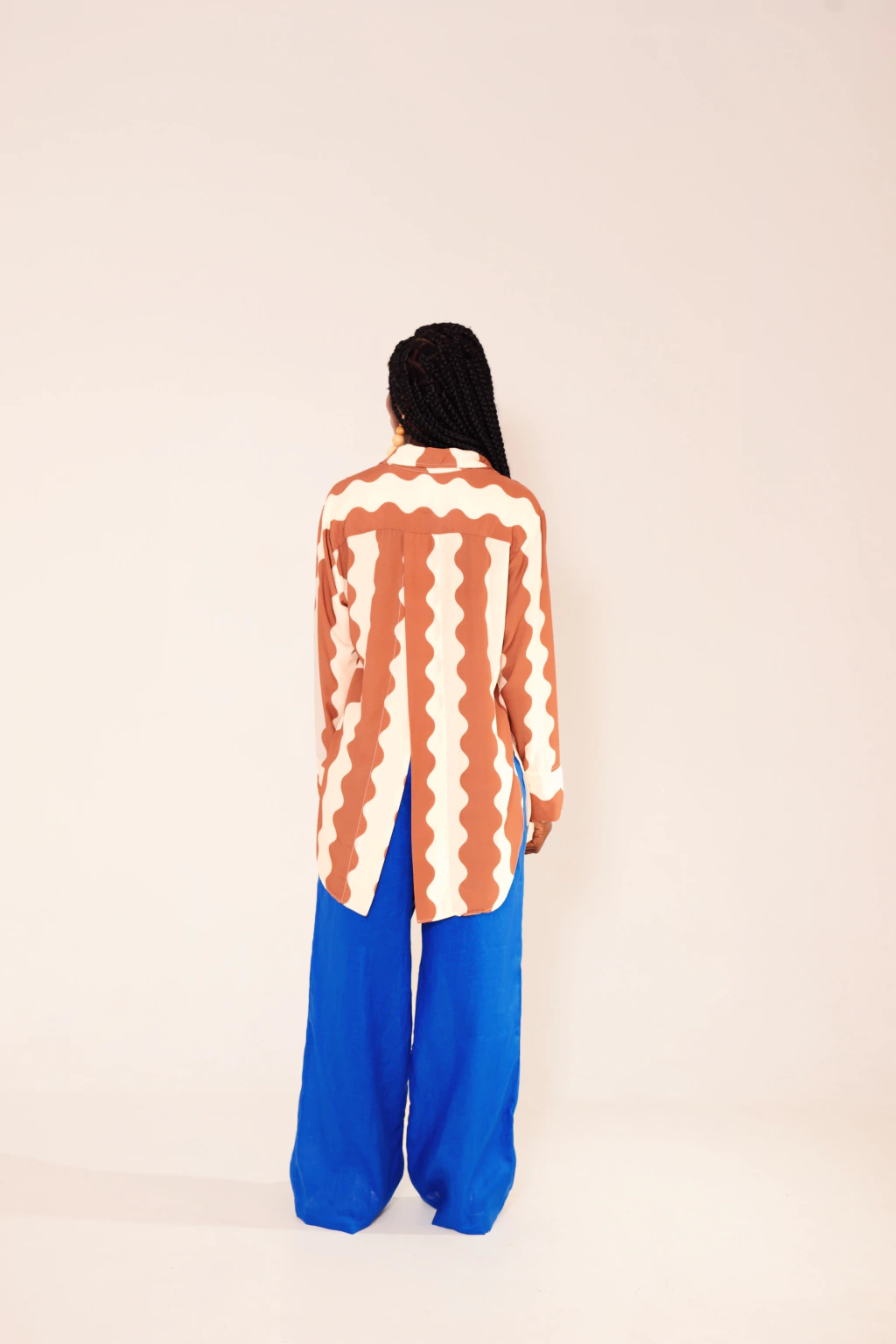 Gola aberta e botões escondidos. Detalhe de abertura nas costas.