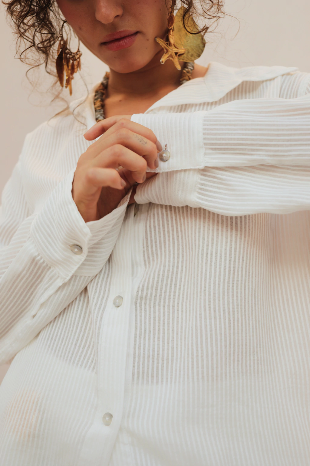 Camisaria fluida com tecido incrível! Manga com recorte reto. Perfeita pra ir do trabalho à praia. Tamanho único que veste do 36 ao 44.
