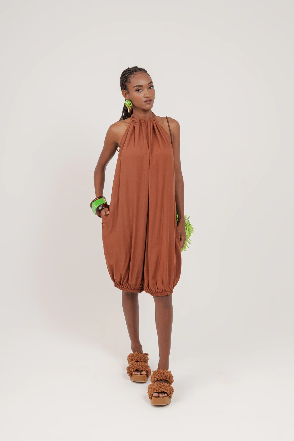Feito em 100% viscose, esse modelo é puro conforto e versatilidade. Possui amarras ajustáveis no pescoço e nas costas, além de elástico nas pernas, permitindo que você use de duas formas: