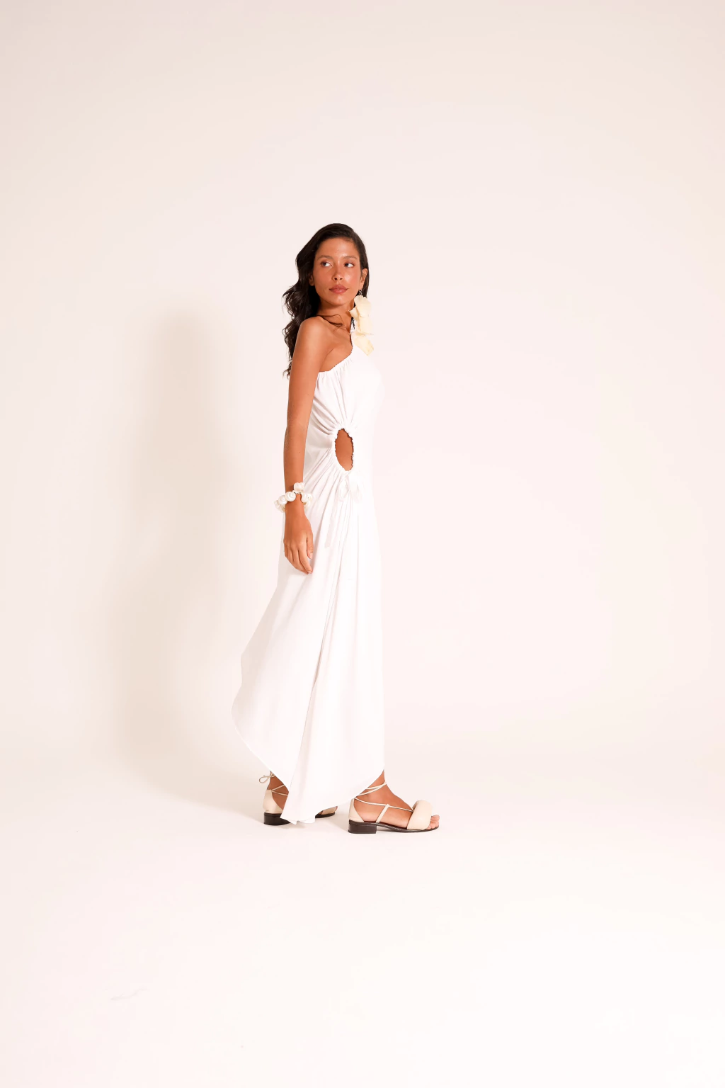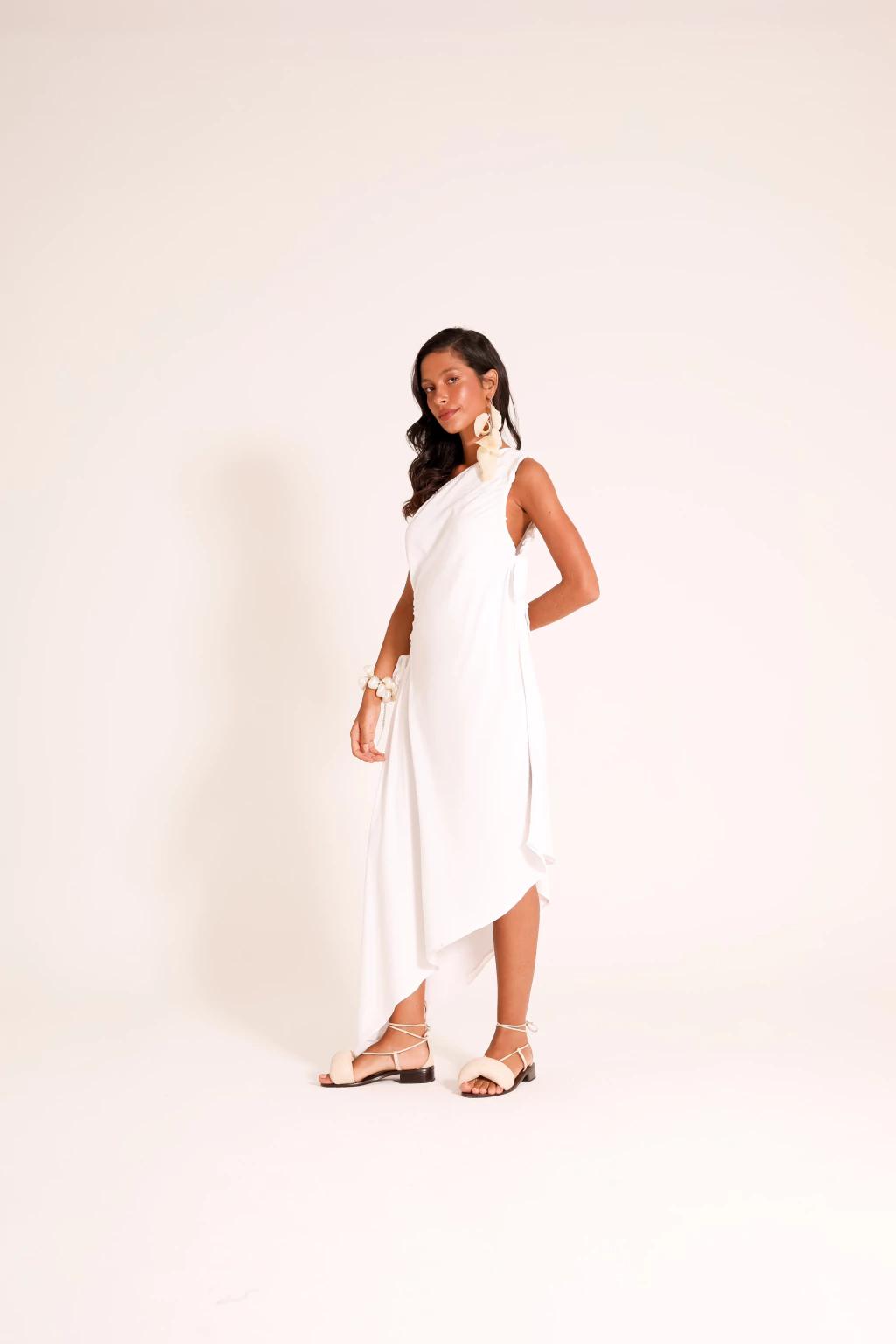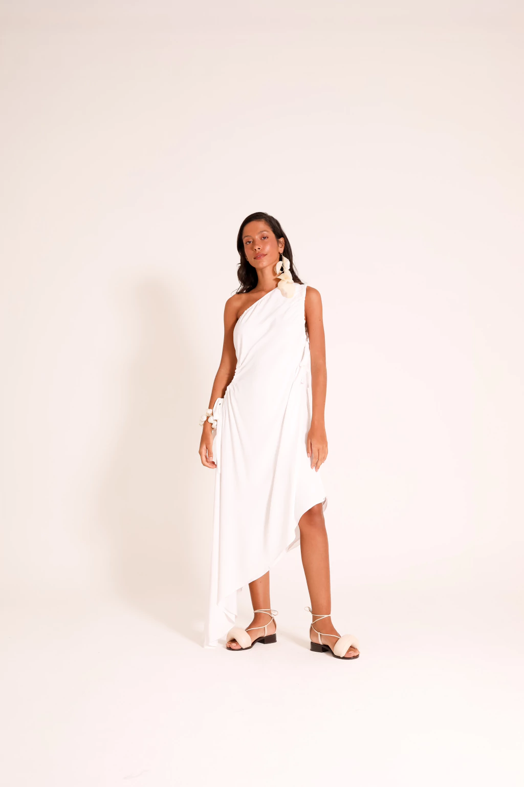 vestido assimétrico de um ombro só com comprimento midi e abertura nas laterais!