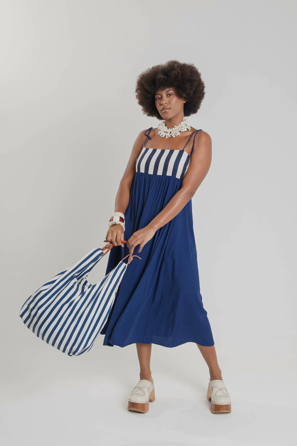 vestido bicolor com alças finas e comprimento midi!